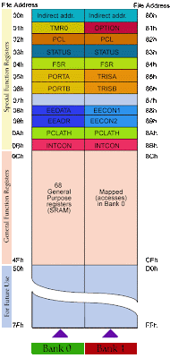 Internal registers of PIC16F84A?Above figure shows the internal arrangement of registers of pic16F8x family. You may observe that the registers are di.......